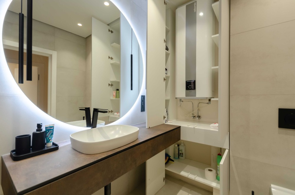 2 санвузли. Є також ще одна кімнатка, це може бути для Вас як і гардеробна кімната в якій є місця для схову речей є гладильна дошка, праска, пральна машина з сушкою, пилосо.