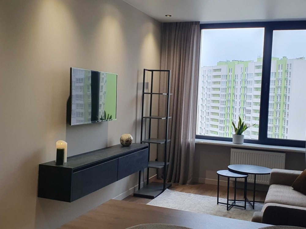Чудове місцерозташування, метро Нивки 2 хв. Добре розвинута Інфраструктура ( супермаркет в будинку, аптеки, банки , ресторани. Великий парк з озерами. Додатково до орендної плати комунальні послуги , комісія 50%
