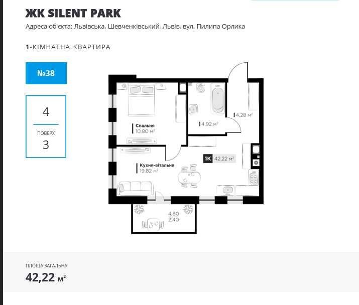 ЖК Silent Park, вул. Пилипа Орлика - 1-кімнатна квартира - фото 2