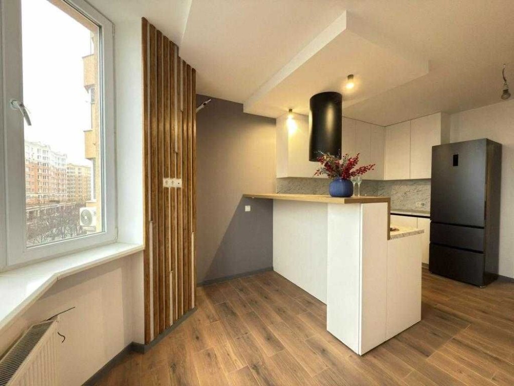 ( перефарбовується коли душа бажає ). В коридорі ніша під шафу. Дві дитячі. Окрема гардеробна кімната. Санвузол роздільний. Спальня зі зручним ліжком та робочою зоною на теплій лоджії. Кухня мрія! Вбудовані меблі та техніка. Стильний острів - стіл. Окремо віддалена зона під гостьовий диван навпроти якого телевізор. Індивідуальне опалення та лічильники, двухконтурний газовий котел. Дуже тепла та повністю внутрішня. Двухстороння з прекрасним видом на школу - садочок. Закрита територія з охороною та відеоспостереженням. Шикарна інфраструктура. Поруч садочок, школа, спортклуб, магазини, аптеки, кавʼярні. Чудова транспортна розвʼязка, гарний трафік транспорту. До метро 15 хв їзди