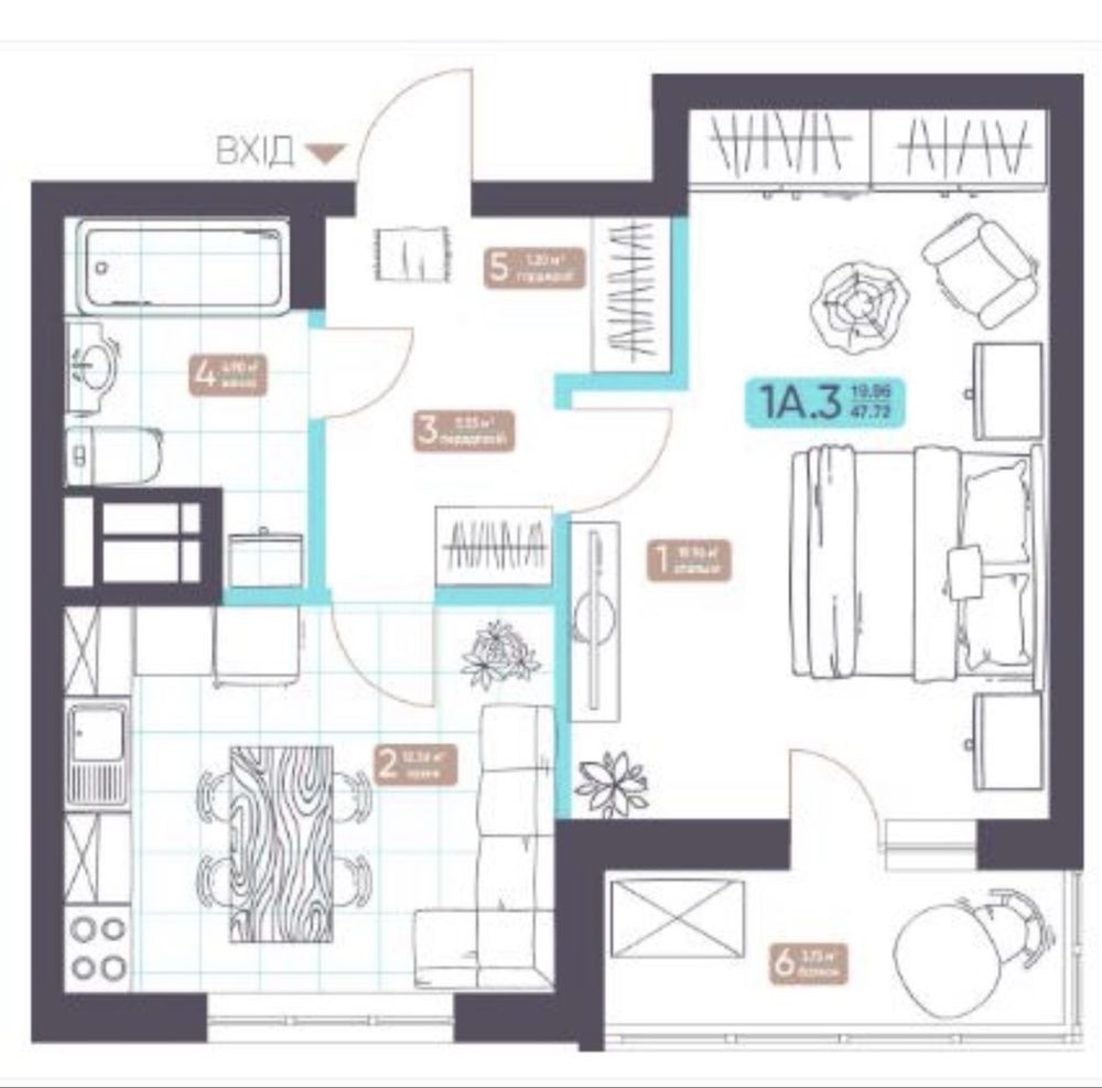 • Загальна площа 48 м2