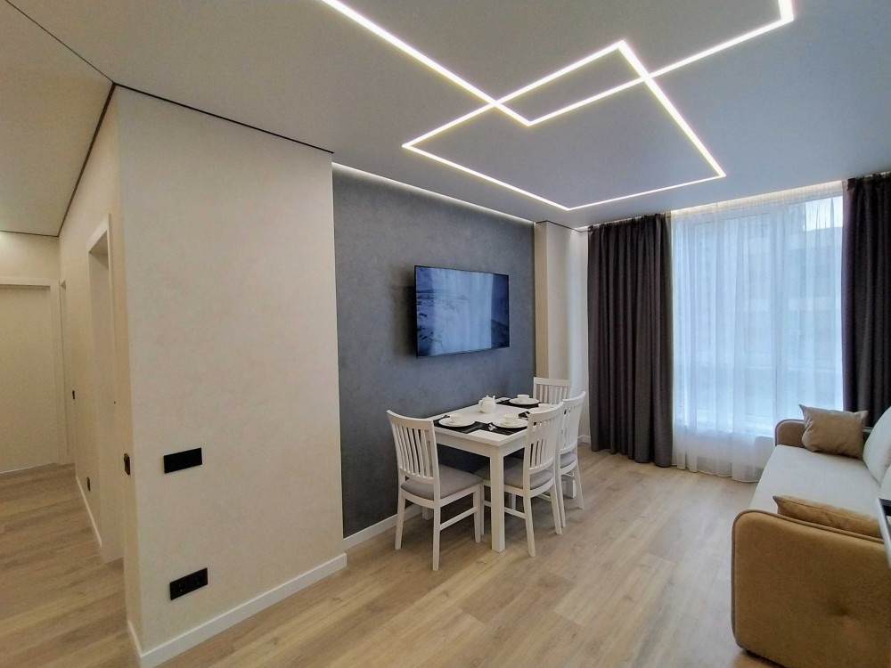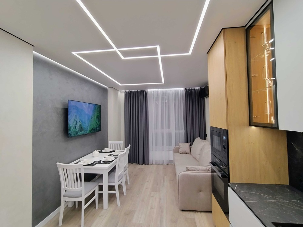 Продаж 1-к квартири вул. Зарічна 2. Найвидовіша квартира в ЖК Славутич. В квартирі зроблено дизайнерський ремонт, є вся необхідна побутова техніка: посудомийка, вбудований холодильник, сенсорна витяжка, варочна поверхня, мікрохвильовка, духовка, пральна машинка з функцією осушки, кондиціонер, телевізори, душ, ванна, інсталяція, парящя стеля, паряще ліжко, декоративна оздоблення стін-штукатурка В ЖК цілодобова охорона на камери відеоспостереження. 044 200 10 80