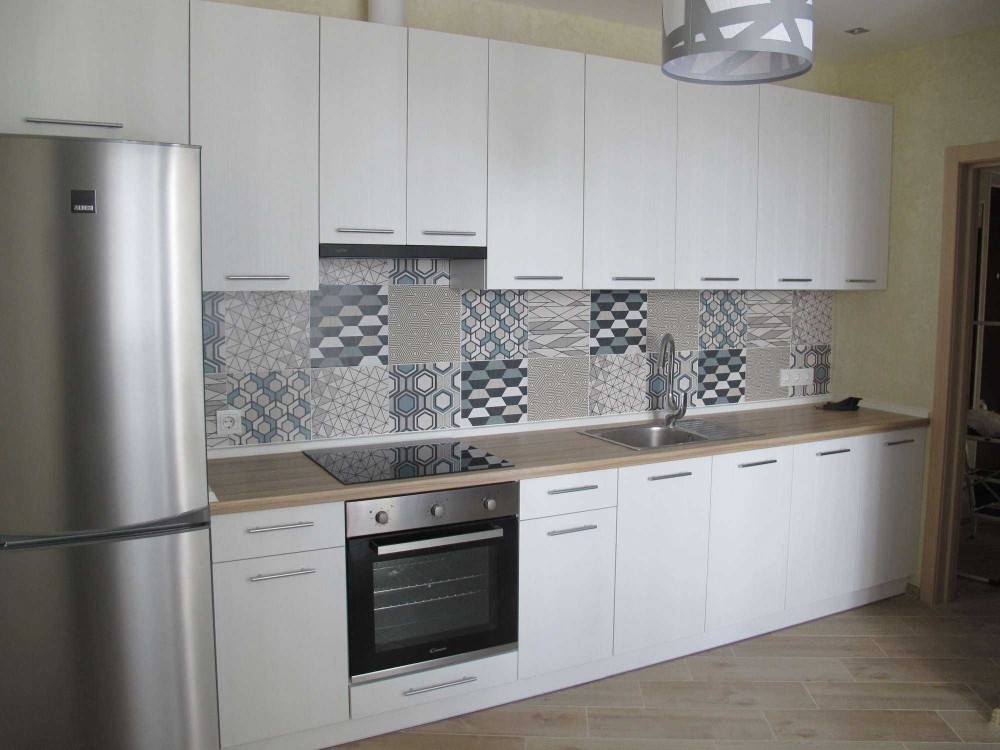 Кухня укоплектована всіма необхідними меблями: варильна поверхня, духова шафа, холодильник, пральна машина, бойлер
