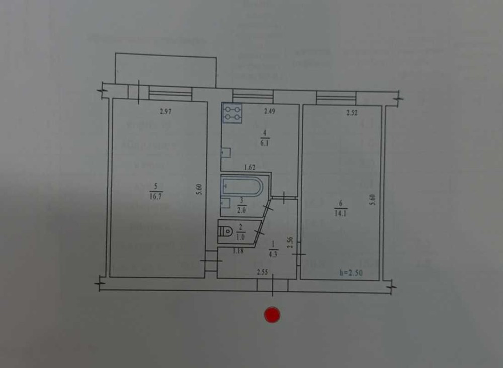 • Площа кухні 6 м2