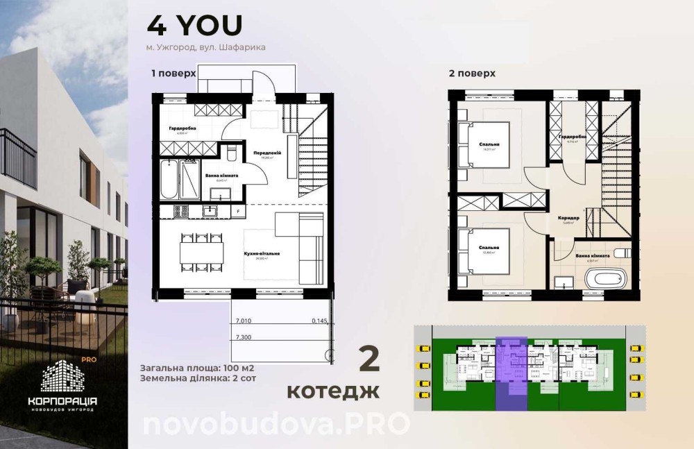 Продаж чудового котеджу з терасою та 2-ма гардеробними у котеджному комплексі “4 YOU”, розташованому у гарному розвиненому р-ні Доманинців. Поруч ліс, канал, річка, свіже повітря. Усього 5 хв. на авто (3 км) до центру міста – пл. Корятовича.