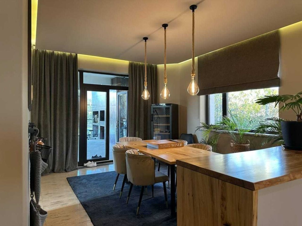 Перший поверх приваблює вас широкою вітальнею площею 80 м², де об’єднана з кухнею їдальня, виконана в стилі хай-тек з вбудованою технікою. Великий кабінет ідеально підходить для продуктивної роботи, а спальня площею 50 м² і санвузол забезпечують розкош та зручність вашого відпочинку. Дитяча кімната із власним авторським ремонтом і цікавим освітленням створить неповторну атмосферу для вашої дитини. Гардеробна кімната та додатковий санвузол дозволять організувати простір максимально зручно та функціонально.