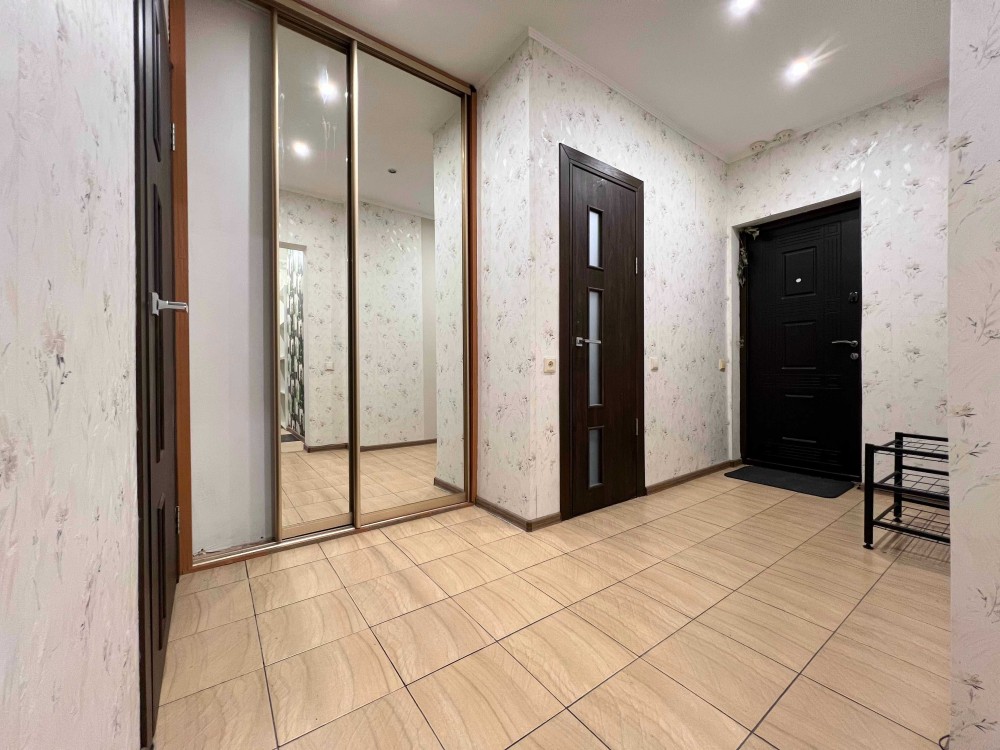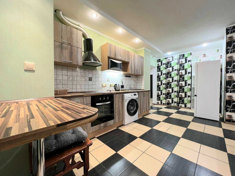 Загальна площа квартири 55м2, велика кухня. В квартирі зроблений якісний ремонт. Укомплектована меблями і технікою для комфортного проживання: двоспальне ліжко з ортопедичним матрасом, диван, вбудована кухня, холодильник, кондиціонер, пральна машина, гардеробна.