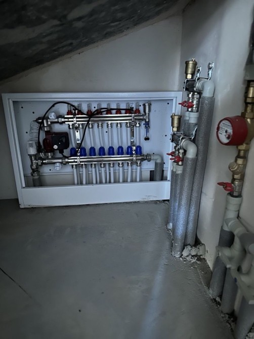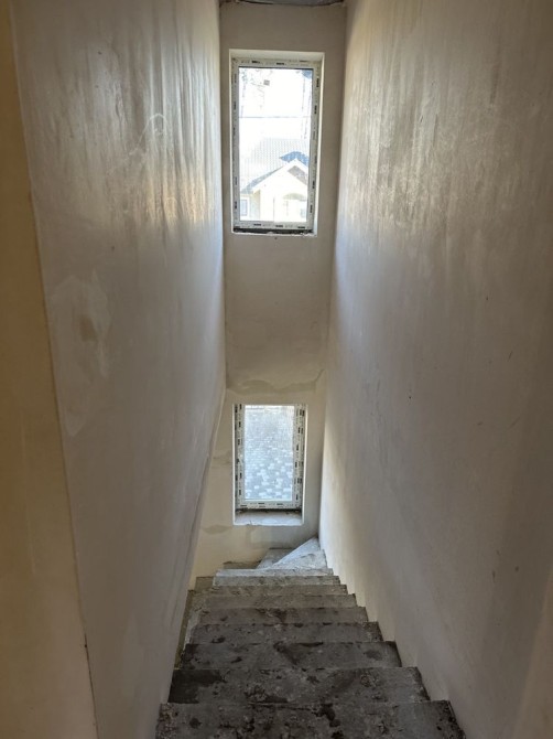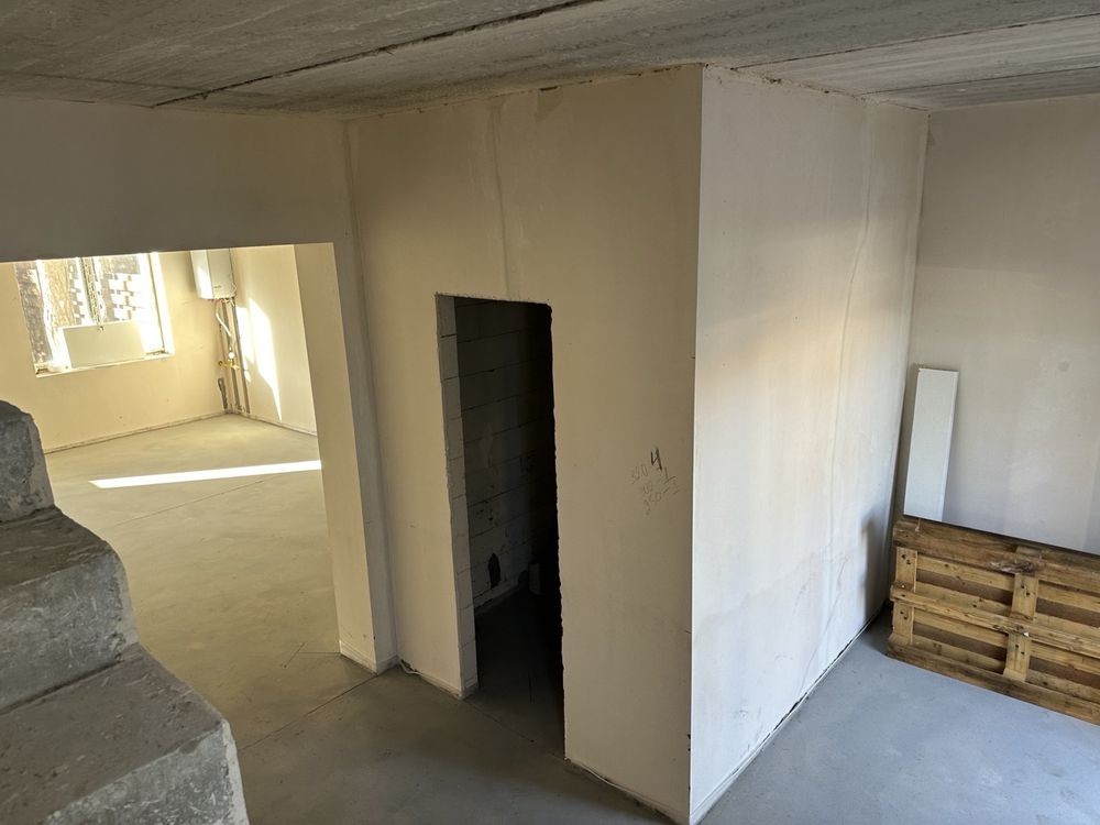 Наповнення - стяжка підлоги, штукатурка чистова стін, тепла підлога - перший поверх повністю, другий поверх - санвузол. Встановлені радіатори на другому поверсі.