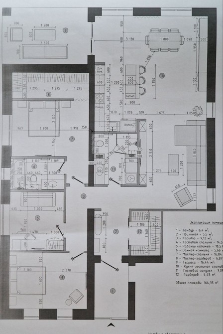 3 ком, 2 с/у, две гардеробные, кухня-гостинная 64м2 + терраса 18м2