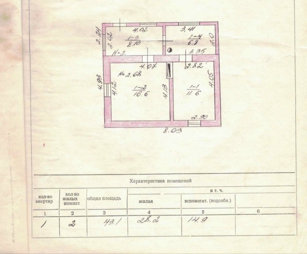 • Общая площадь 43 м2