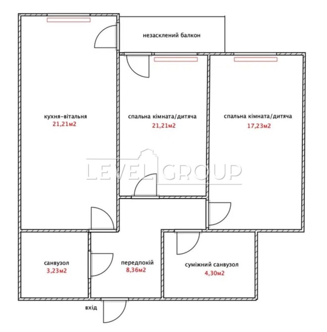 — 2 окремі кімнати + кухня-вітальня