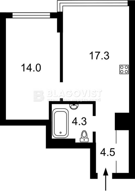 • Площадь кухни 17.3 м2