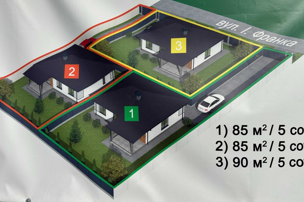 Планується: автополив, газон, оздоблення фасаду термодеревом, ворота