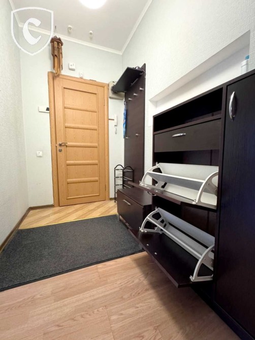 В коридорі є зручні меблі для взуття та одягу.