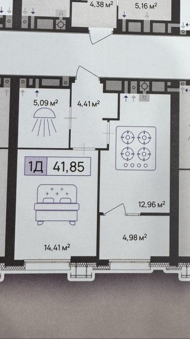 • Общая площадь 42 м2