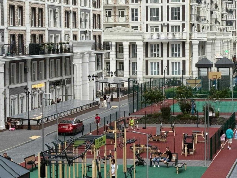 ЖК "Нова Англія" Двір БЕЗ АВТОМОБІЛІВ! надзвичайне місто в місті, видовий прогулянковий майданчик, підземний та наземний паркінг, на території велика школа "Європейський колегіум", дитячий садок, якісні, сучасні, великі дитячі майданчики, дитячі гуртки, спортивний майданчик, тенісний корт, міні-футбол, салони краси, клініки, сімейний врач, майданчик для собак, салони для тварин. Затишні кафе, ресторан, маркети. Метро "Васильківська" 10-15 хвилин пішки.