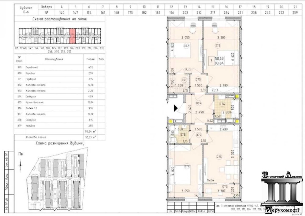 51 000 $ 970 $ м² 8/14 пов. | 52.60 м² тел 0933464401