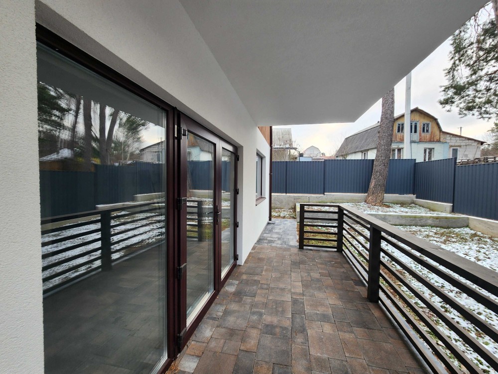 Площа 134м2.: чотири кімнати , два санвузла ,гардеробна, технічне приміщення, велика кухня-студія ,вихід на велику терасу із прибудинкової територією.
