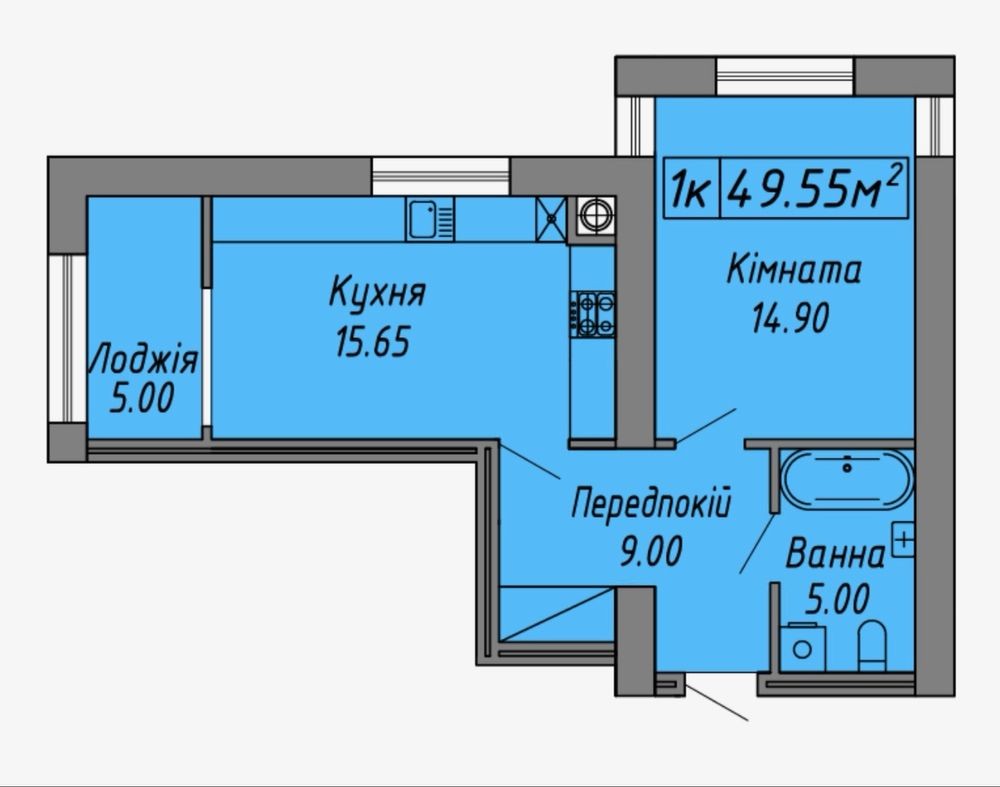 Площа: 49,55 м²