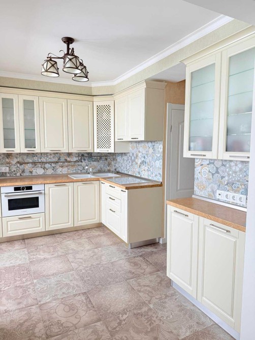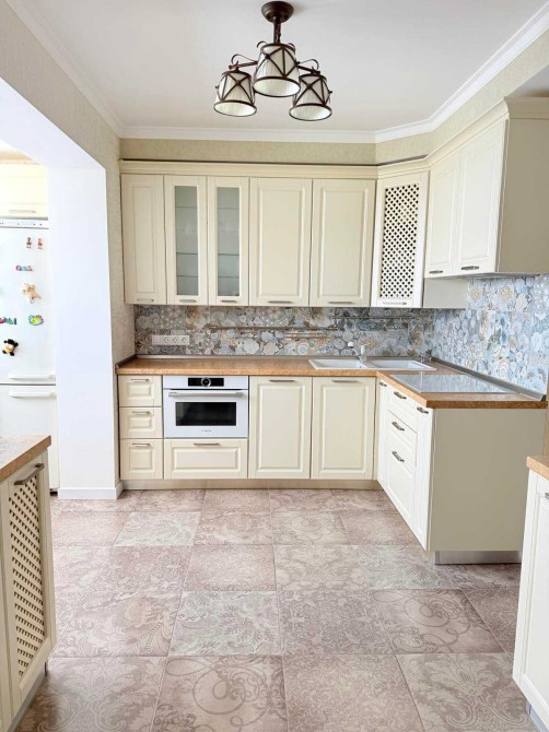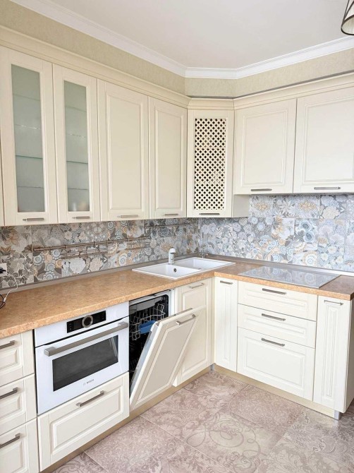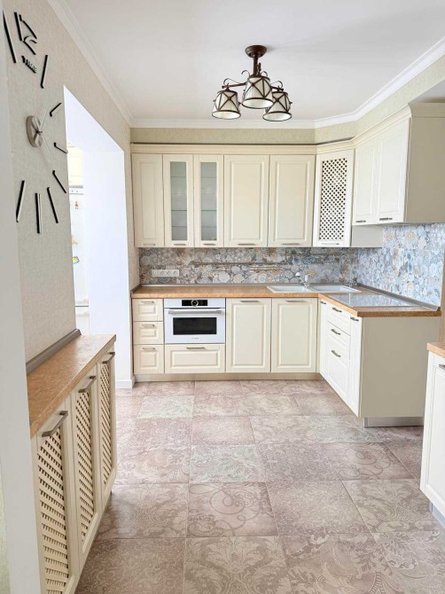 На кухні вбудовані меблі, побутова техніка Bosch (варочна індукційна поверхня, духовка-мікрохвильовка, холодильник, посудомийка), витяжка, кондиціонер, телевізор, дві зони теплої підлоги, фільтр на воду. В коридорі велика вбудована шафа-купе. У ванної сантехніка Ravak. Велика та добре продумана система зберігання. Всі меблі та техніка залишаються.