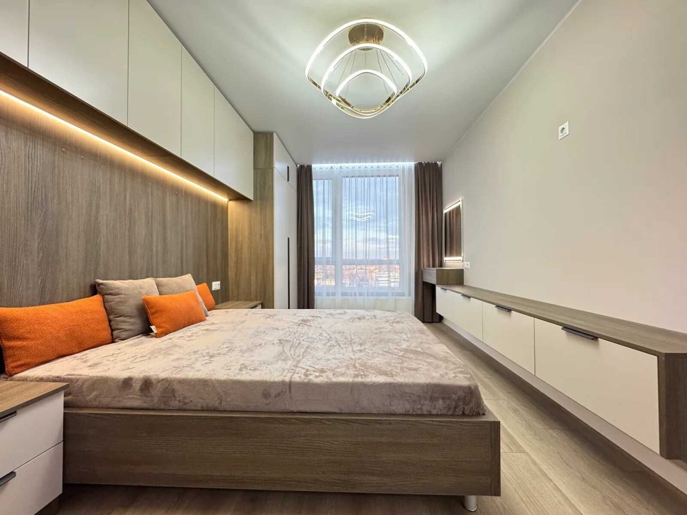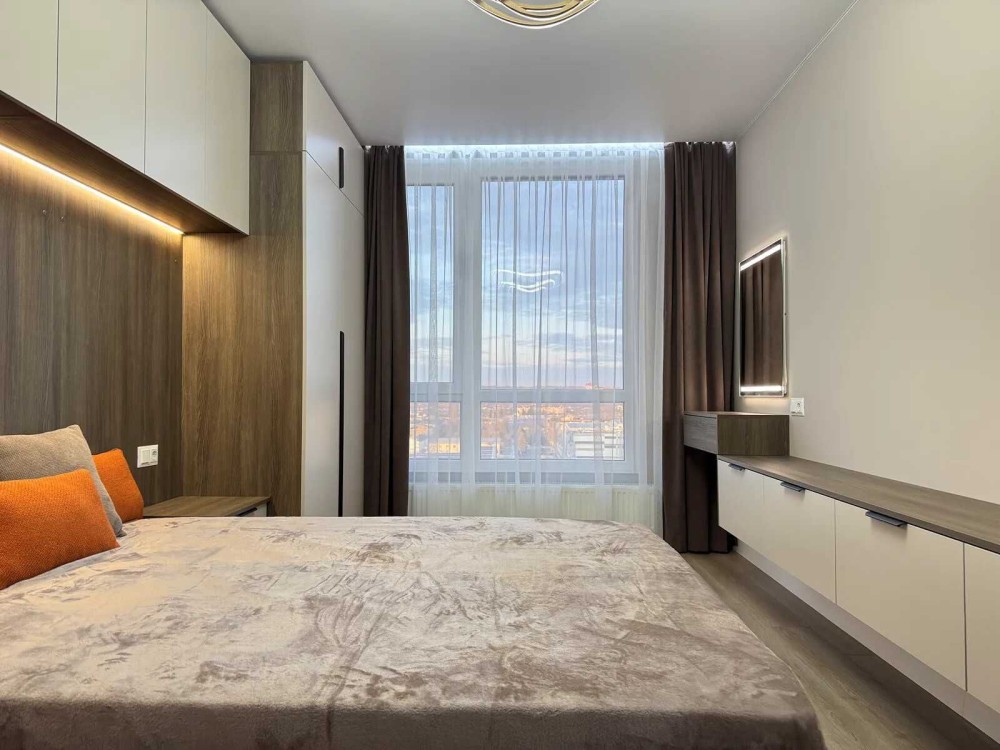 Пропонує до продажу РОЗКІШНУ 2 кім квартиру в сучасному будинку по вул.Б.Вишнивецького. Квартира розташована на 16 поверсі, 18-ти поверхового будинку, має загальну площу більше 80кв.м. Неймовірна квартира з сучасним ремонтом розташована в самому ЦЕНТРІ міста, що створює неперевершену атмосферу для життя. Величезна кухня, обладнана найновішою технікою та стильними меблями, є справжнім серцем квартири, де приготування їжі стане справжнім задоволенням. Величезні вікна забезпечують неймовірний вид місто. Просторі кімнати та зручне планування дозволяють організувати комфортне і функціональне житло, яке поєднує елегантність і сучасні технології. У квартирі встановлені лічильники на воду, тепло та лічильник "день-ніч"на електроенергію., є власна гардеробна кімната. У вартість квартири входять всі меблі та техніка. Панорамний вид місто з цієї квартири вражає своєю красою та масштабами. Вечорами можна насолоджуватися незабутніми заходами сонця, а вдень — спостерігати за життям міста та його ритмом. Це місце ідеально підходить для тих, хто хоче поєднати комфорт сучасного життя,