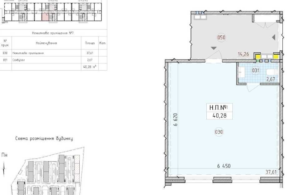 Поряд із цим приміщенням пропонується для продажу інший офіс площею 40,28 м², який розташований у кінці секції. За бажанням площу можна збільшити, об'єднавши ці два приміщення.