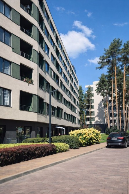 Квартира дуже світла та простора, з великими вікнами та приємним видом на сосни. Планування продумане для комфортного життя.