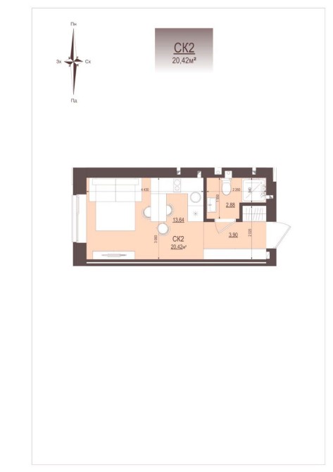 • Общая площадь 21 м2