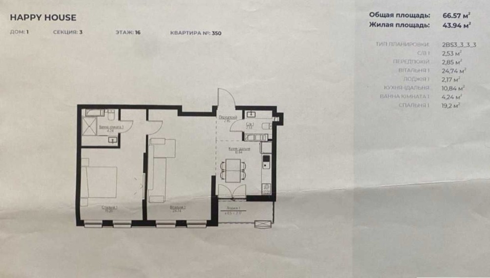 • Общая площадь 66.57 м2