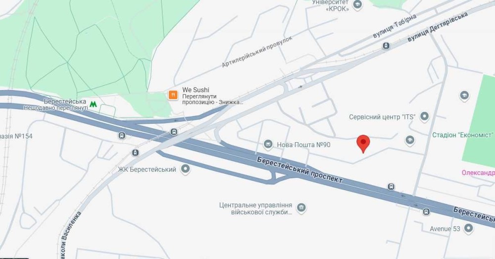 До метро Берестейська - 5 хв ходьби, метро Нивки - 10 хв