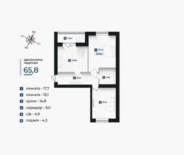 • Общая площадь 65.8 м2
