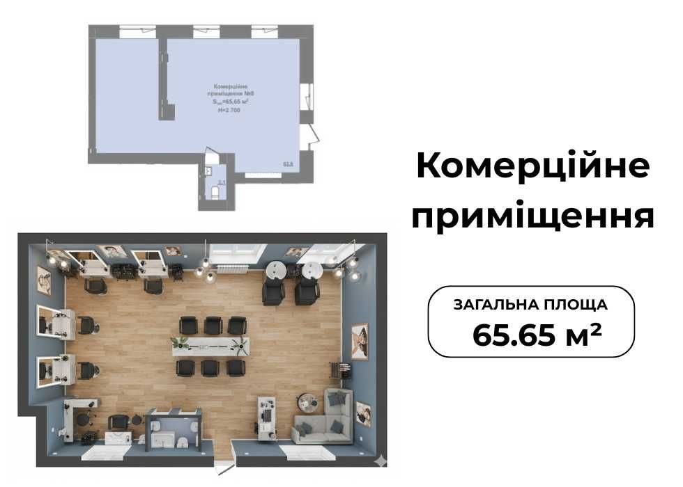 - Площа 65,65 м² на 1-му поверсі
