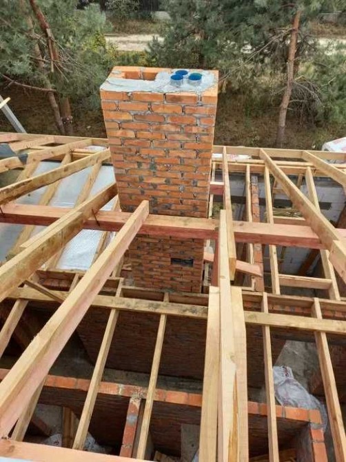 - Зроблено 2 димарі для твердопаливного котла в паливній та комину в гостьовій, димарі з цегли, утеплені мін.ватою та загільзовані трубою з нержавійки 1мм.