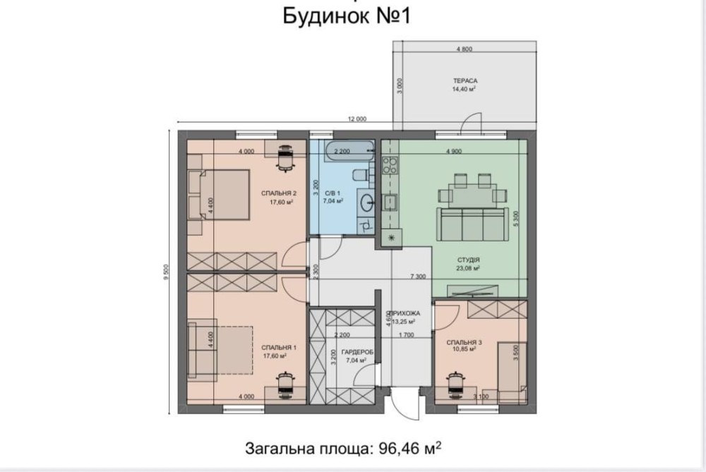 • Общая площадь 96.46 м2