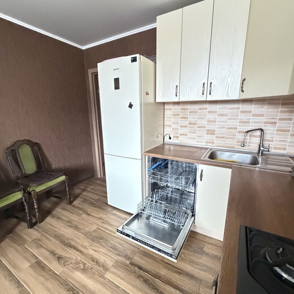 Кухня - Плита газова, духовка електро, холодильник, морозильна камера, посудомийка, мультиварка, соковижималка, посуд. Кухонний гарнітур + 2 шафи кладових.