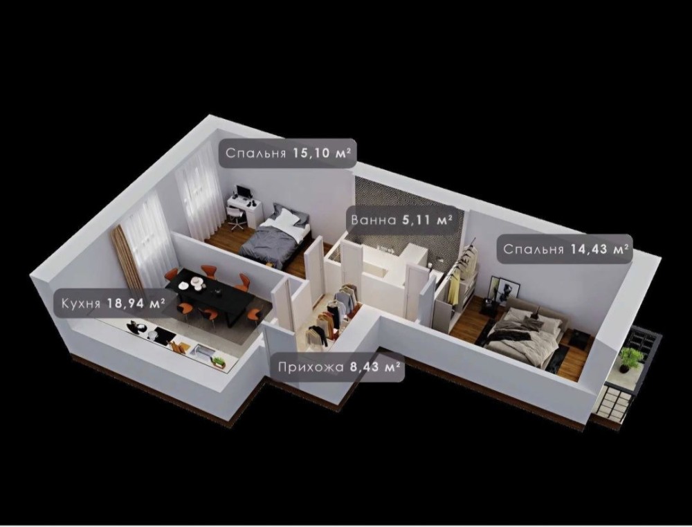• Общая площадь 62 м2