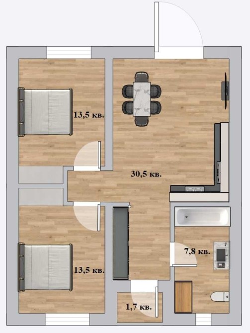 - Трехкомнатная