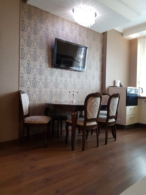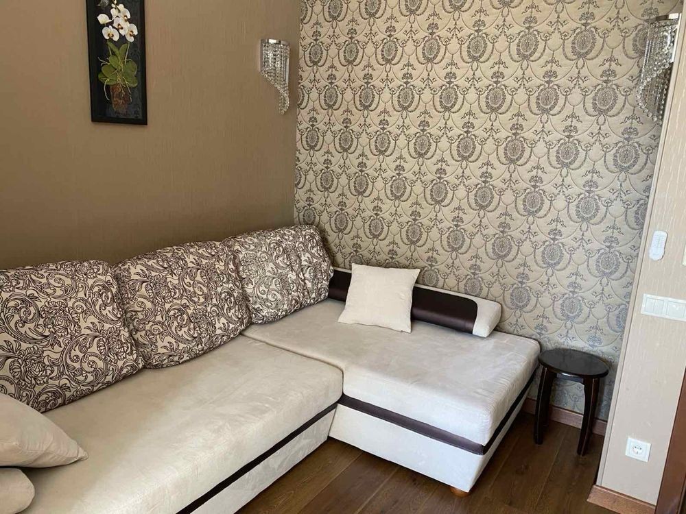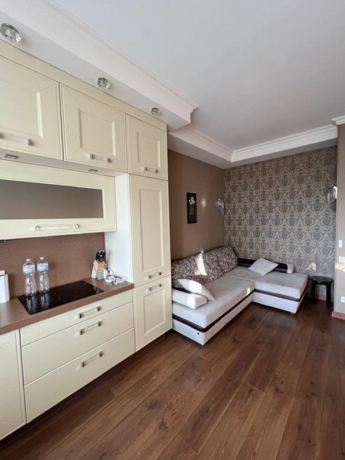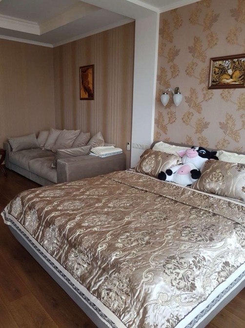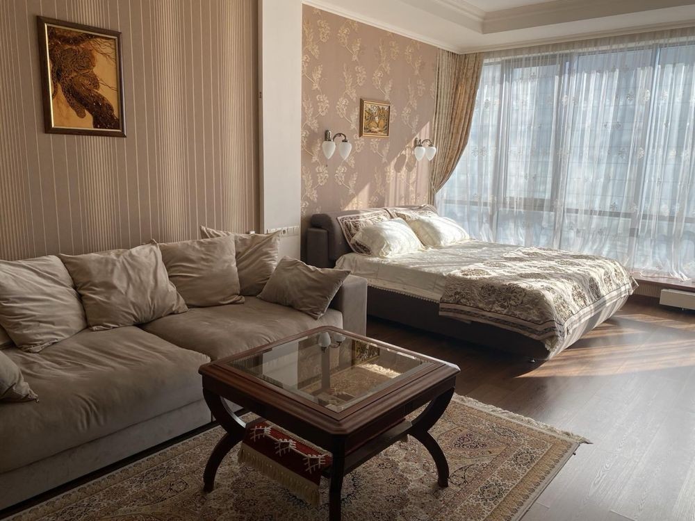 Квартира має зручне планування: простора кухня з кутовим диваном та повністю укомплектованою кухнею, окрема спальня з великим ліжком і великим розкладним диваном. Функціональна гардеробна та простора ванна кімната з ванною. Панорамні вікна