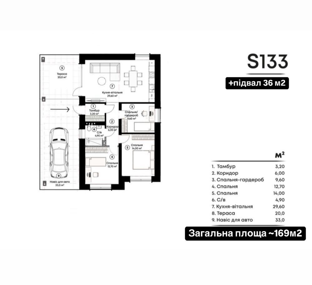 Будинок має покращене планування: підвал і парковку на 3-4 автомобіля без шкоди для розміру ділянки.