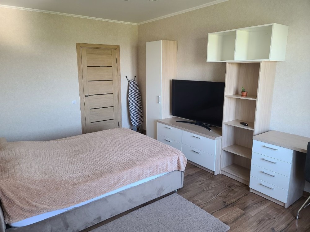 Квартира обладнена всім необхідним - холодильник, мікрохвильовка, посудомийка, духовка, чайник, пральна машинка, кондиціонер, є також фільтр води (осмос), плазма, сигналізація в квартирі, укомплектована кухня, 3 великі шафи та 2 меблеві стінки, робочий стіл, диван на кухні, гладилка та сушарка для одягу (металева) тощо.