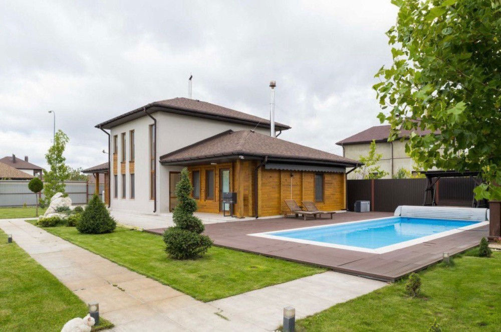Прибудинкова територія має продумане та логічне зонування, з окремим рекреаційно-гостьовим блоком та басейном.