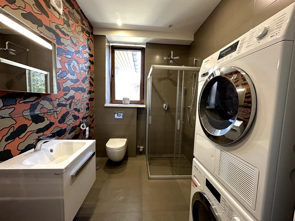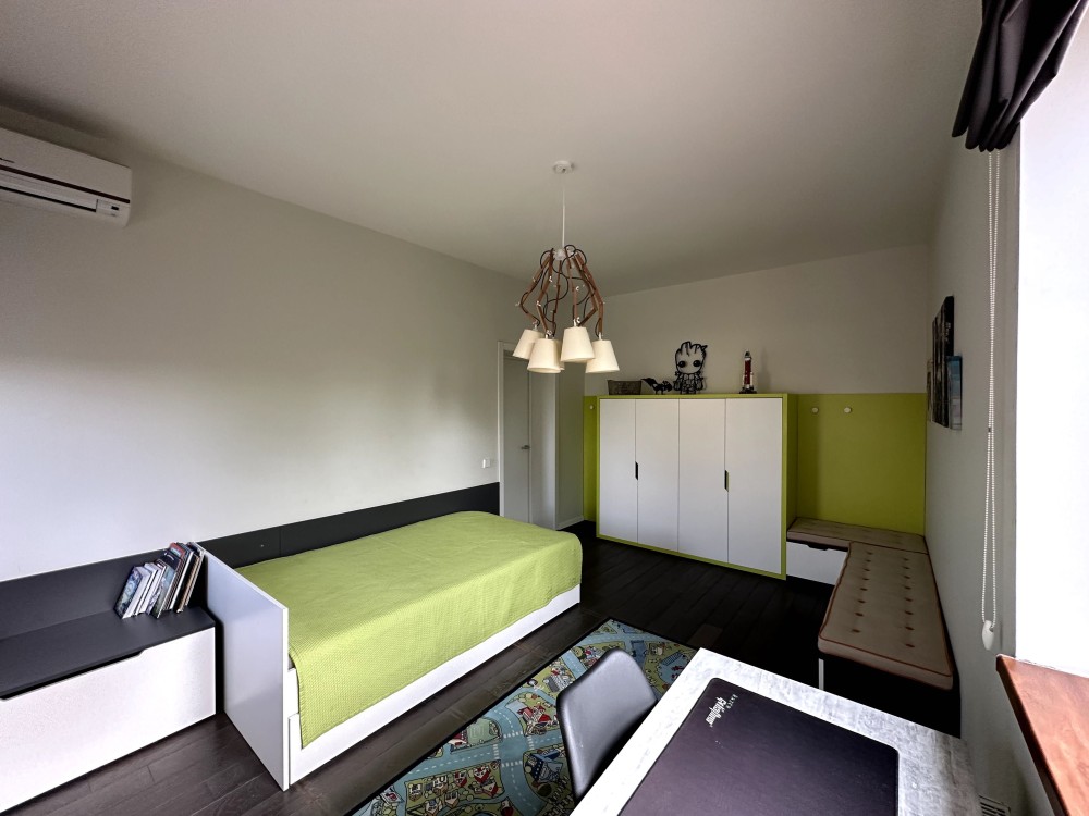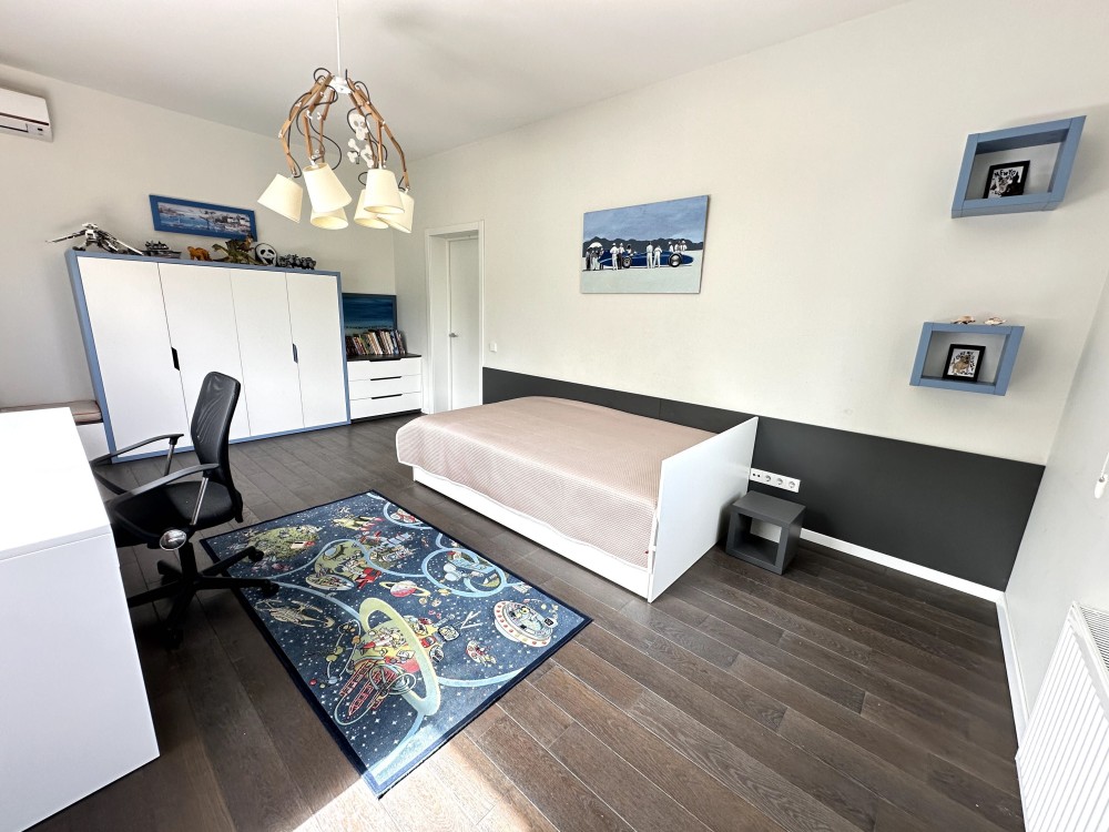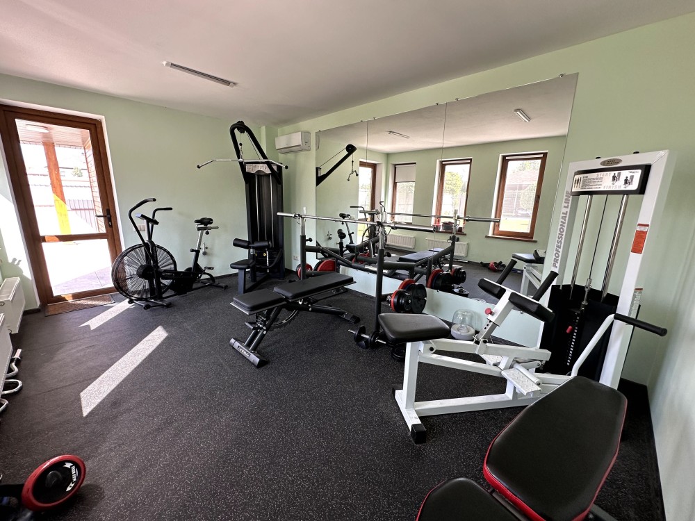Рекреаційно-гостьовий блок, площею 180 кв. м, складається з декількох просторів та легко урізноманітнить Ваше життя та дозвілля. Тут розташована фінська сауна з дубовою купіллю та зоною відпочинку, тренажерний зал з професійним спортивним обладнанням, а також житлове приміщення зі спальнею, кухнею, зоною відпочинку та санвузлом для розміщення гостей. Окрім цього, в будівлі акуратно вписано серце безперебійного, автономного функціонування будинку — котельню з господарськими приміщеннями, в якій встановлено газовий та твердопаливний котли, систему очищення води Ecosoft, а також потужний дизельний генератор на 29 кВт з АВР.