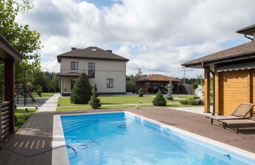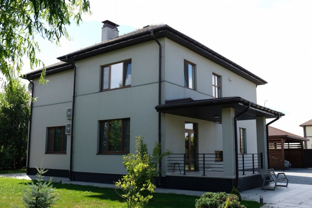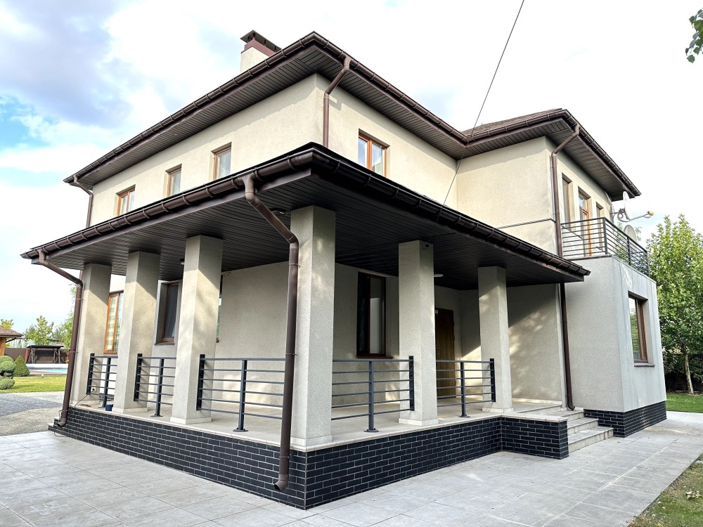 Продаж двоповерхового будинку з басейном, сауною, тренажерною залою та гостьовим будинком у закритому котеджному містечку з охороною і відеоспостереженням в селі Проців. Асфальтований підʼїзд.