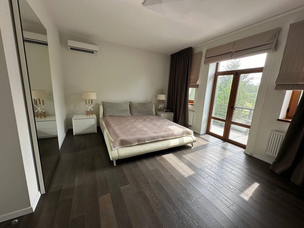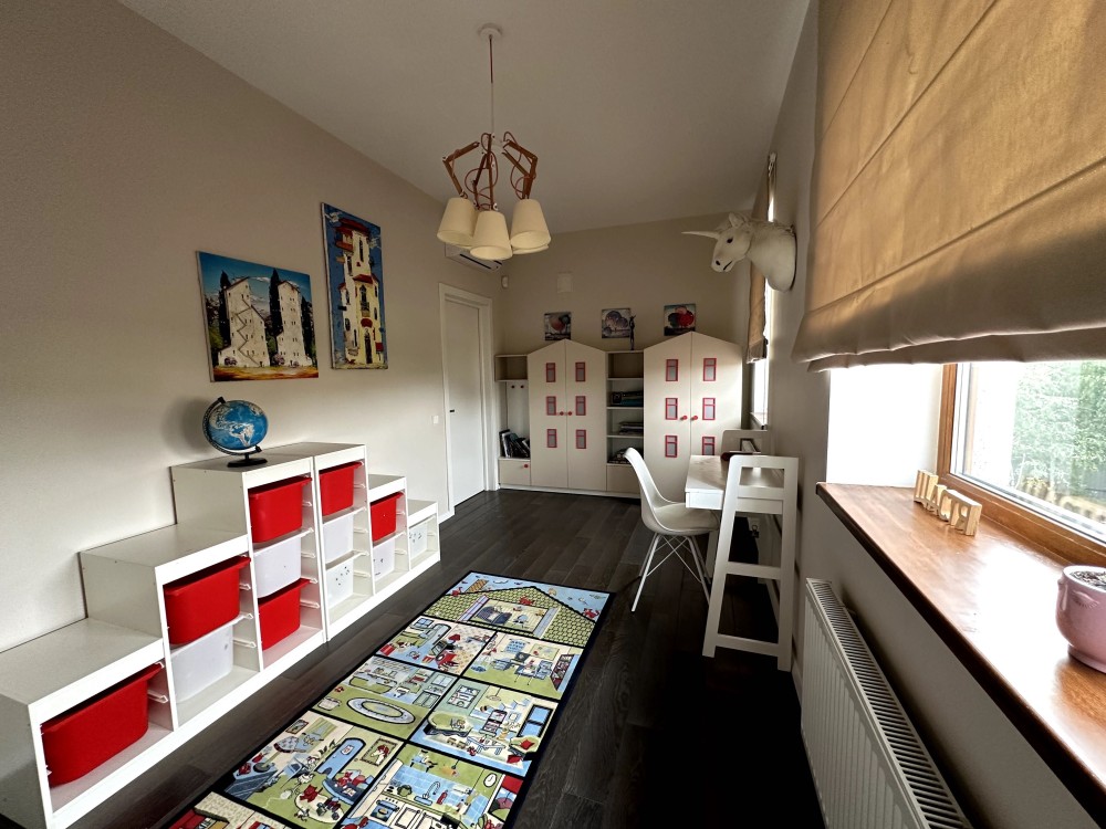 Основний будинок загальною площею 222 кв. м. На першому поверсі - багатофункціональний простір, який найактивніше використовується в повсякденному житті — вітальня з каміном, бібліотекою та розважальною зоною, кухня-студія з просторою обідньою зоною, ігрова кімната для дозвілля дітей, а також передпокій з гардеробною та санвузол. На другому поверсі розташовано 4 спальні кімнати та санвузол. На мансардному поверсі — комфортний кабінет та великий простір для зберігання речей.