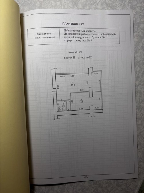 Загальна площа 46м2, стан квартири - після будівельників.