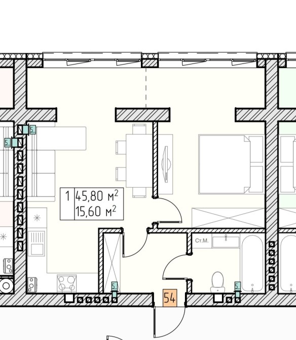 • Общая площадь 45.8 м2