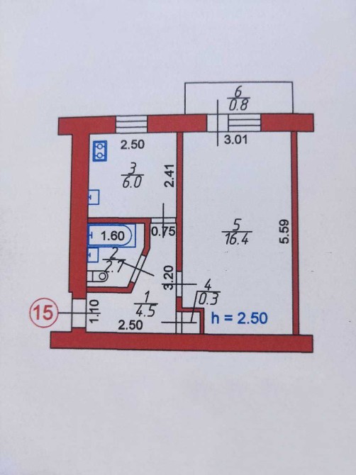 • Площадь кухни 16.4 м2
