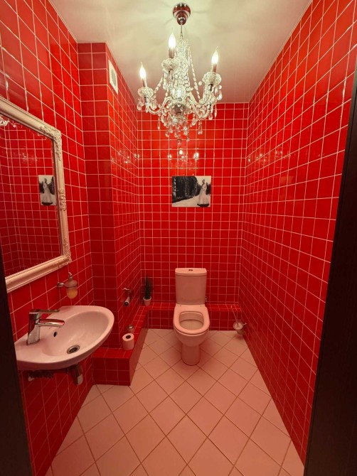 Вбудована кухня укомплектована сучасною технікою: холодильником, варильною поверхнею, посудомийною машиною, пральною машиною. М"який куточок, шафки, телевізор - все для комфорту власників.