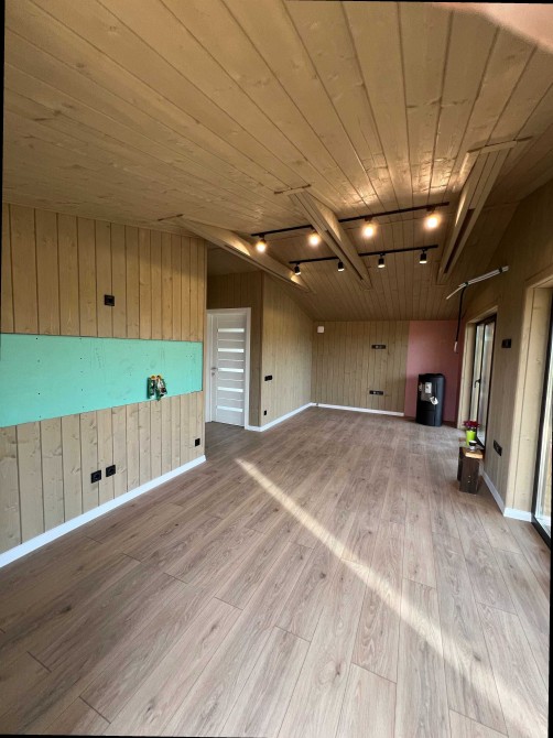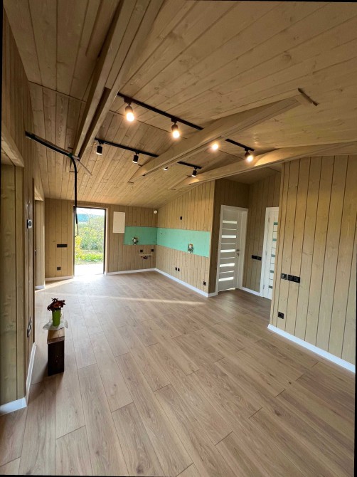 Що ви отримуєте: Стіни пофарбовані у вибраний вами колір (імітація бруса), на підлозі лежить ламінат, встановлені міжкімнатні двері. Вам залишається тільки занести меблі.