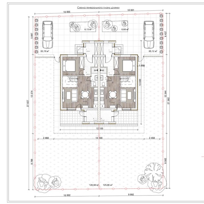 • Ділянка: 3 сотки (1,5 сотки приватної території біля будинку + 1,5 сотки спільної території комплексу)